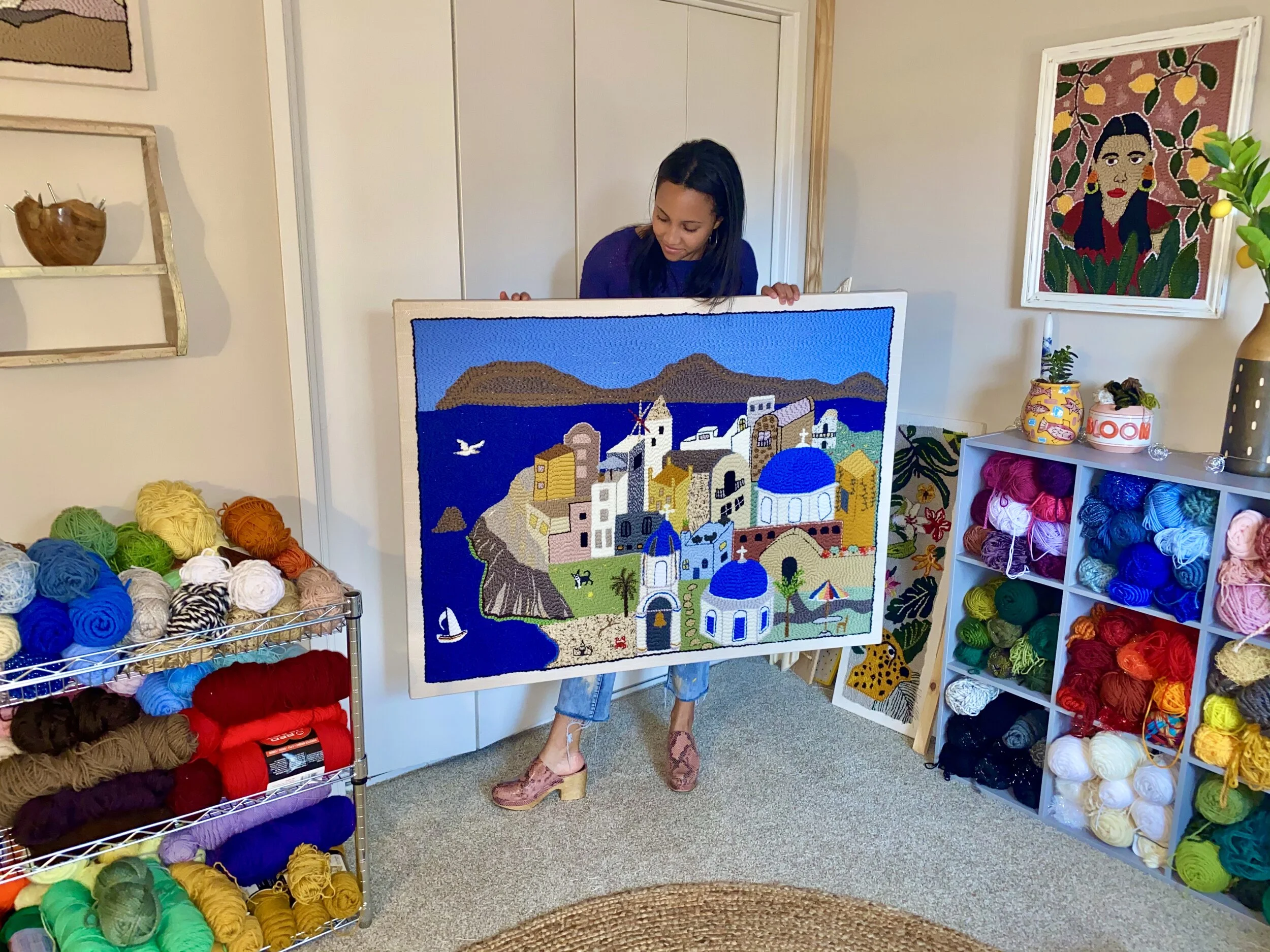 I was immediately intrigued by punch hooking when I recently discovered it in 2018. Although previously dabbling in printmaking, painting and ceramics in more formal class settings, I stumbled my way through teaching myself to punch hook through trial and error. Very few resources where available past the basics, which forced me to quickly start exploring firsthand by experimenting. I quickly developed my own style and was able to put a fresh modern spin on the reemerging medium. My inspirations predominantly come from people and animals although my growing fascination with plants and flowers is obvious in my work as well.